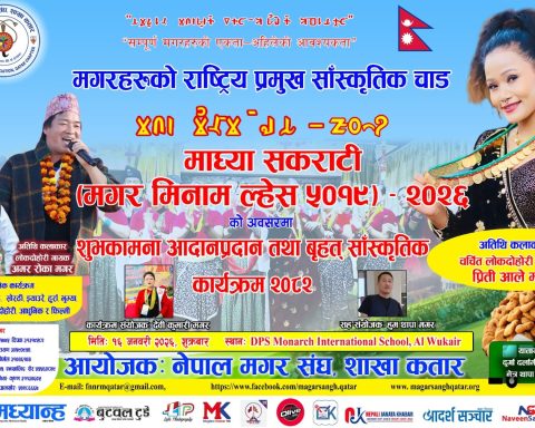 दोहा (कतार) : प्रवासमा रहेर पनि आफ्नो संस्कृति र परम्परालाई जीवन्त राख्ने क्रममा कतारस्थित मगर समुदायले यस वर्ष पनि माघे सङ्क्रान्ति पर्व भव्य रूपमा मनाउने भएको छ। नेपाल मगर संघ, शाखा कतारको मुख्य आयोजनामा आगामी शुक्रबार विविध सांस्कृतिक