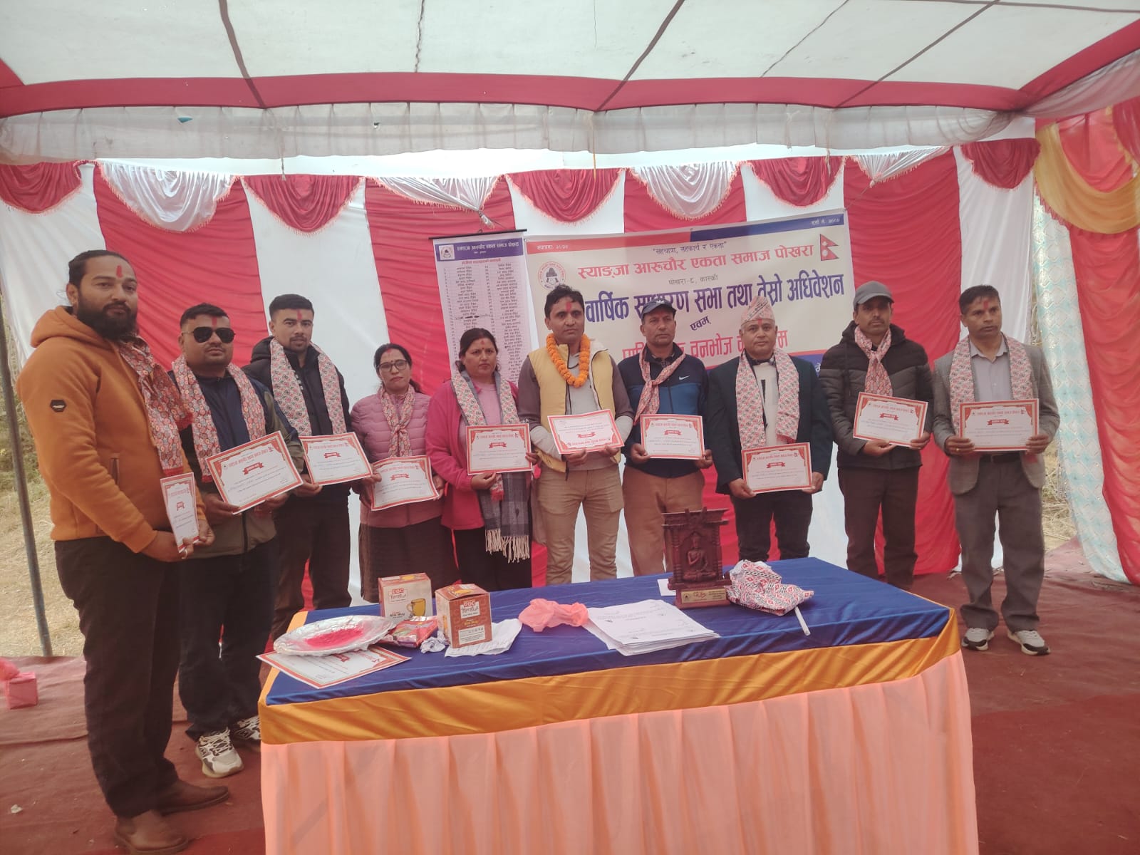 स्याङ्जा आरुचौर एकता समाज पोखराको सातौँ वार्षिक साधारण सभा तथा तेस्रो अधिवेशन शनिबार पोखराको मेधलाङमा सम्पन्न भएको छ। पारिवारिक वनभोजसहितको मनोरम वातावरणमा आयोजित अधिवेशनले प्रतापराज पौडेलको अध्यक्षतामा नयाँ कार्यसमिति सर्वसम्मत रूपमा चयन गरेको छ।समाजका अध्यक्ष अमृत घिमिरेको अध्यक्षतामा सम्पन्न कार्यक्रममा वरिष्ठ सल्लाहकार एवं पूर्व प्राध्यापक उमाकान्त पौडेल प्रमुख अतिथि रहनुभएको थियो।