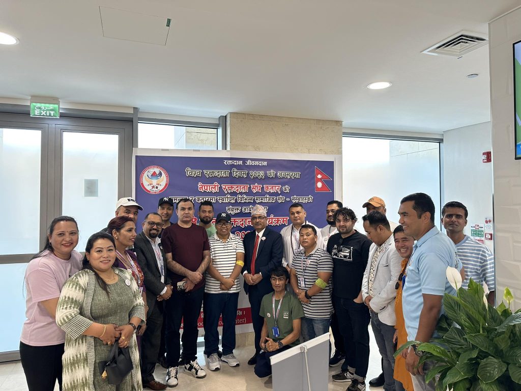 कतारमा लुम्बिनी प्रदेश समन्वय परिषद्को आठौं स्थापना दिवसको अवसरमा “रक्तदान” कार्यक्रम