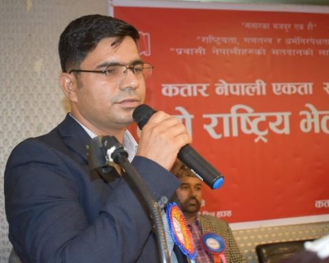 दोहा – कतार नेपाली एकता समाजको तेस्रो राष्ट्रिय भेला बाट अर्घाखाँची निवासी राम प्रसाद पराजुली अध्यक्षमा निर्बिरोध निर्वाचित भएका छ्न । “संसारका मजदुर एक हौं” राष्ट्रियता गणतन्त्र र धर्मनिरपेक्षताको रक्षा गरौं, प्रवासी नेपाली हरुको मतदानको लागि संघर्ष गरौं