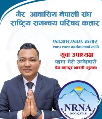 दोहा- बिदेशमा बस्ने नेपाली हरुको साझा सस्था गैर आवासीय नेपाली संघ अहिले बिस्वभर आफ्नो राट्रिय समितिको ०२३-०२५ को लागि लागी चुनाब मा होमिदै छ l कतारमा आउदो अधिबेशनका लागी उम्मेदबारी घोषणा हुन् थालेका छन् l यसैक्रममा युवा उपाध्यक्षमा